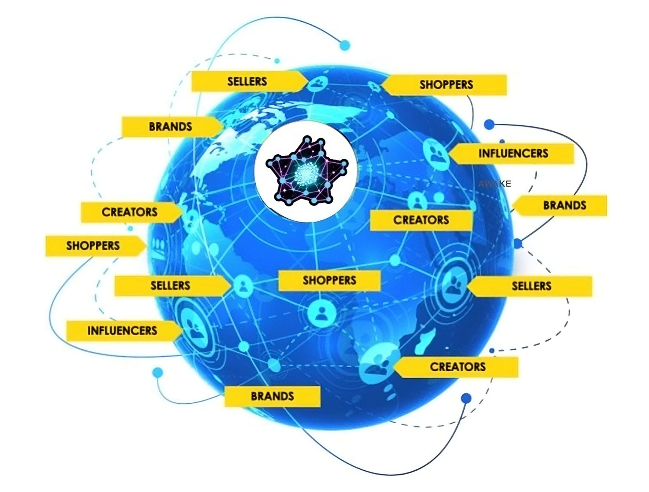 Commerce - brands, products, services for the marketplace, along with 20% to 50% commissions, paid out mainly to the last mile or level